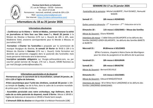 17 - Semaine du 17 au 25 janvier 2026