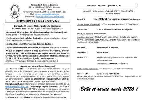 15 - Semaine du 3 au 11 Janvier 2026