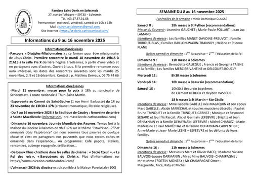 Feuille de semaine du 8 au 16 novembre 2025