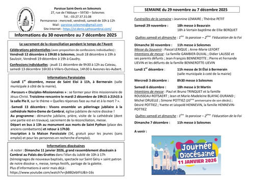Feuille de semaine du 29 novembre au 7 décembre 2025