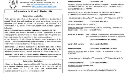 Propositions de chants pour le mois de FEVRIER 2026 paroisse St Denis en Solesmois