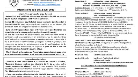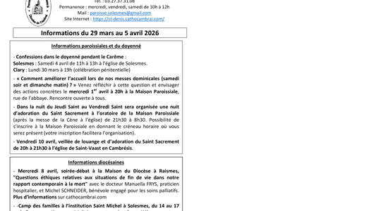 Propositions de chants pour le mois d'Avril 2026 paroisse St Denis en Solesmois